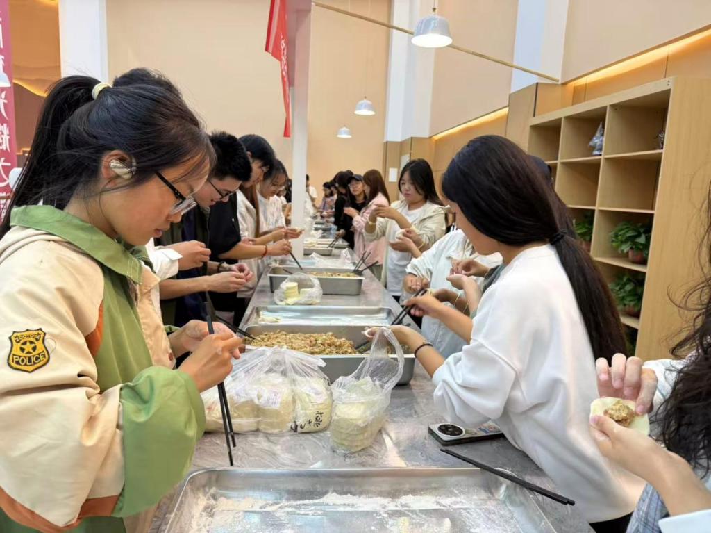 党建联谊活动同样精彩,9月30日,学院在玉泉校区食堂一楼开展了党建联谊活动,10位教师党员、部分学生代表积极参与此次活动,通过包饺子这一极具中国特色的饮食习俗,与套圈、投壶等传统游戏,将抽象的文化符号转化为可感知、可参与、可体验的具体行动,让传统文化在亲身体验中焕发出新的生命力。拉近了师生距离,活动得到了师生的一致好评。
