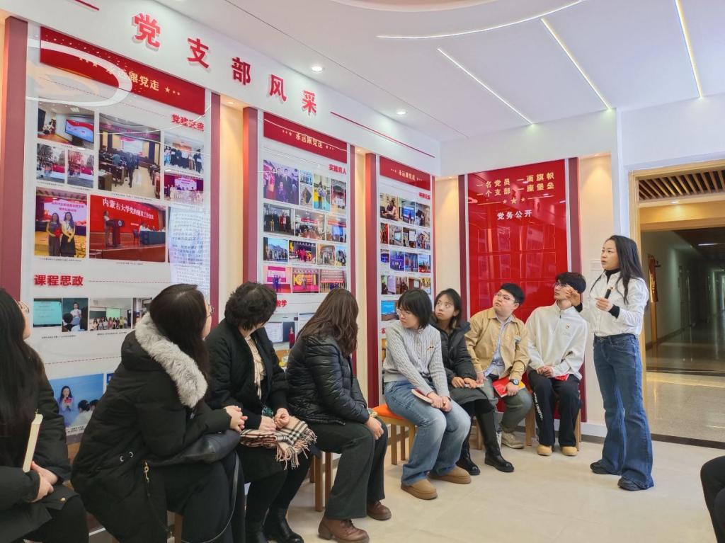 活动伊始,大学外语教学部党支部书记张红梅带领全体党员走进大外党建园地。在张红梅书记的细致讲解下,党员们通过文字资料、荣誉展板、活动记录等内容,系统回顾了大外党支部的发展历程,深入了解其在组织建设、品牌创建、育人实践中取得的丰硕成果,在沉浸式参观中接受了深刻的党性教育。